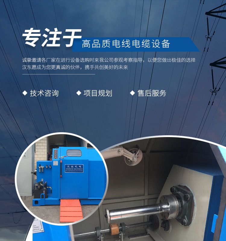 常州漢東機(jī)械始創(chuàng)于2006年,是集電線電纜機(jī)械設(shè)計(jì)、開發(fā)、制造、安裝、調(diào)試為一體化的高科技企業(yè)。本公司自開業(yè)以來,積極引進(jìn)日本,歐美等國外電線電纜設(shè)備之先進(jìn)技術(shù),先后成功推出了達(dá)到行業(yè)先進(jìn)水平的電線電纜設(shè)備,主要產(chǎn)品有擠出、繞包、束線、成纜等電線電纜固定設(shè)備。在提供系統(tǒng)設(shè)備的同時(shí),還向客戶提供售前技術(shù)咨詢、項(xiàng)目規(guī)劃、以及售后服務(wù)。我公司本著“以人為本、科技先導(dǎo)、用戶為上”的宗旨,為客戶提供牢靠的產(chǎn)品與省心的服務(wù)。漢東愿成為您更真誠的伙伴,攜手共創(chuàng)美好的未來! 了解更多+